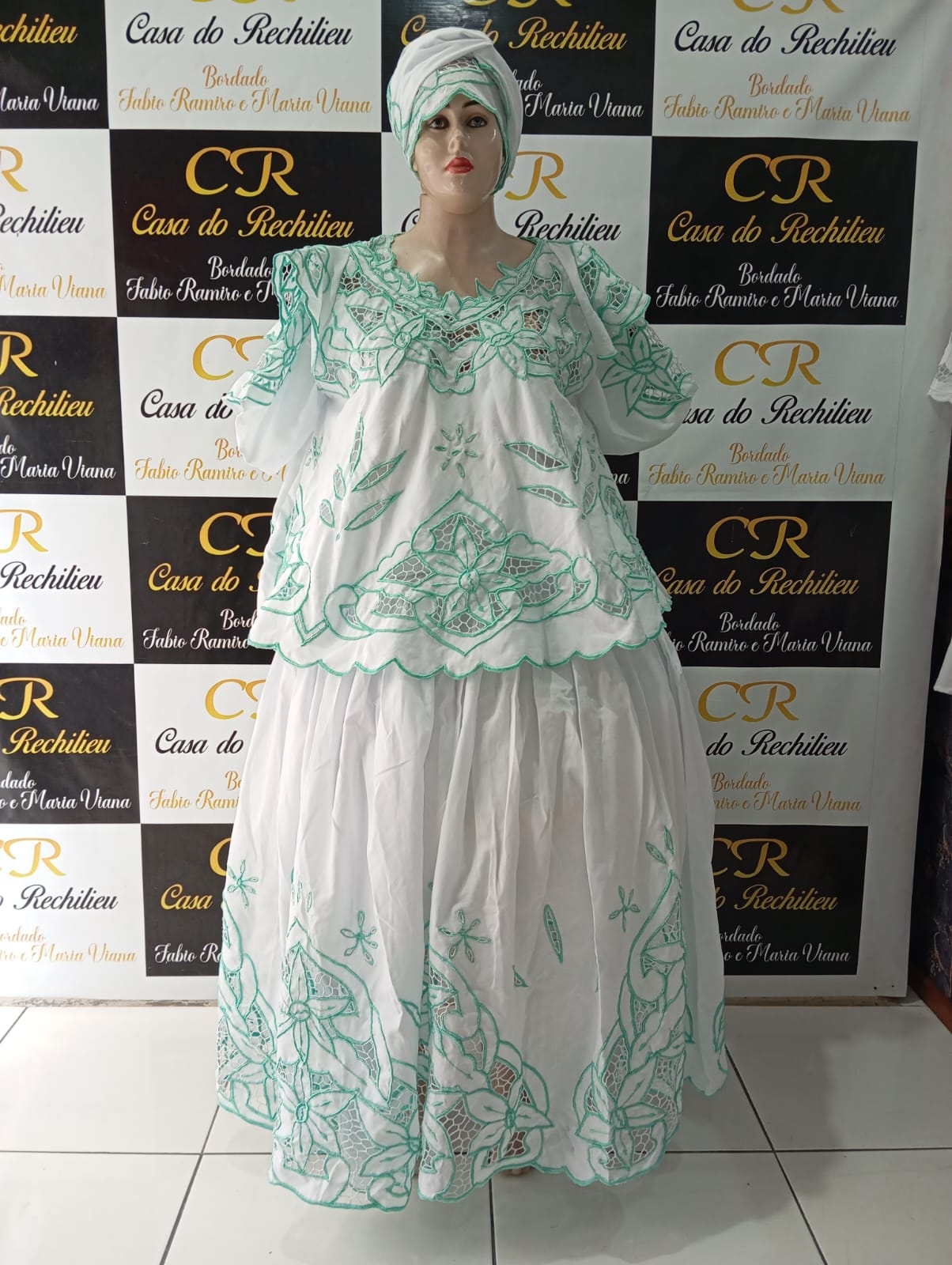 Baiana bordado verde com fio prata 6peças