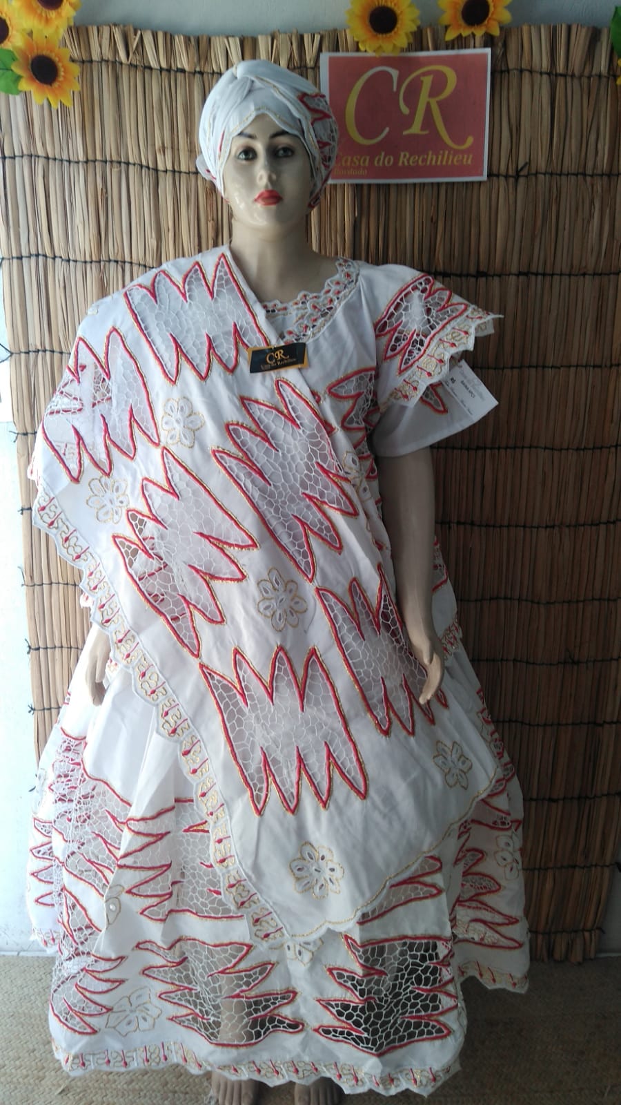 Baiana bordado vermelho com fio dourado 6peças