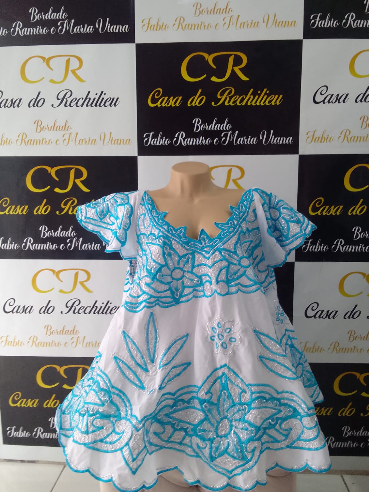 Bata bordado azul com fio prata