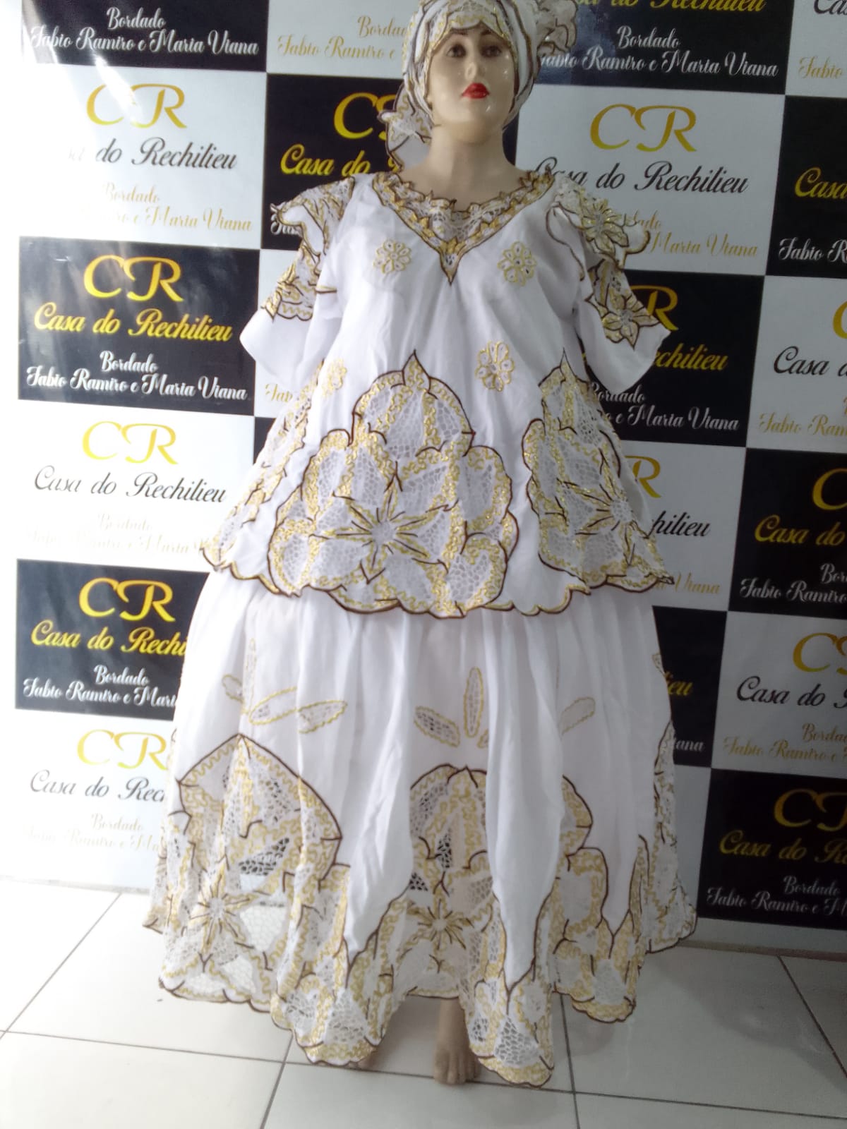 Baiana Rechilieu Marrom e fio dourado 6 peças