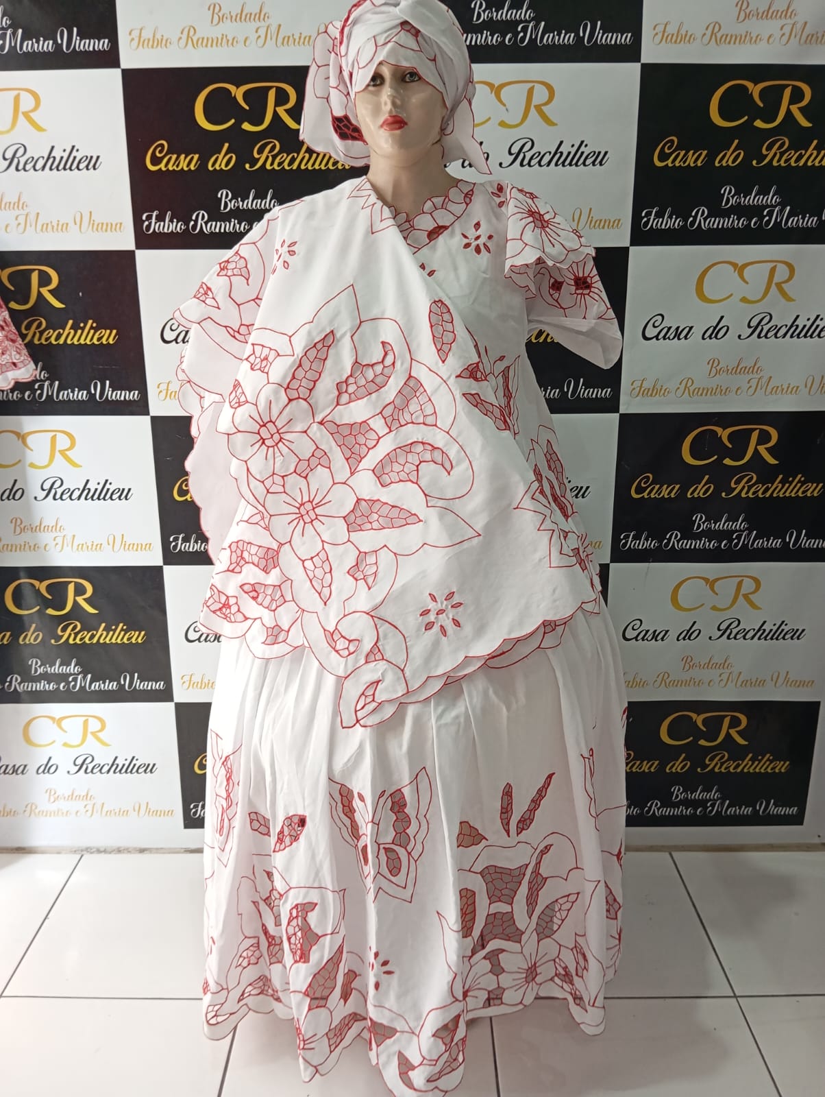 Baiana bordado vermelho 6peças