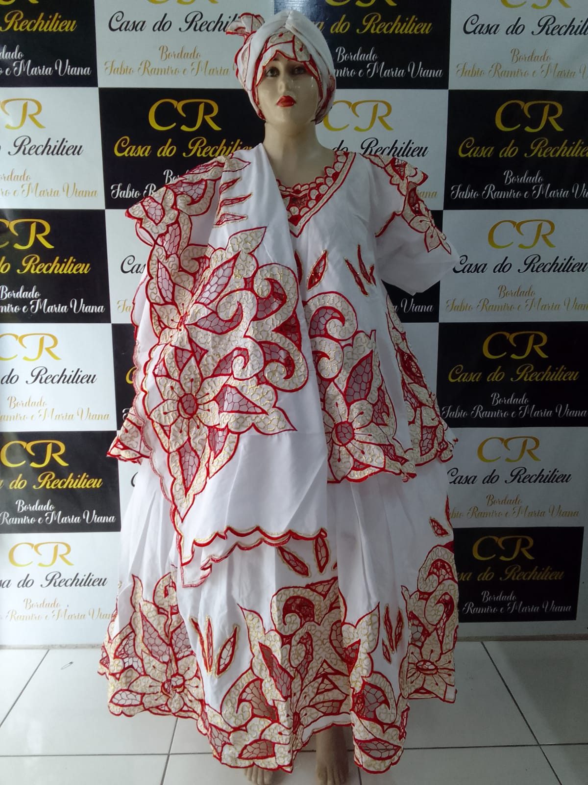 Baiana Rechilieu Vermelho e fio dourado 6 peças