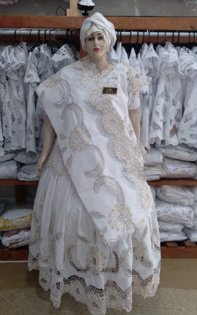 Baiana Rechilieu Branca e fio Dourado6 peças